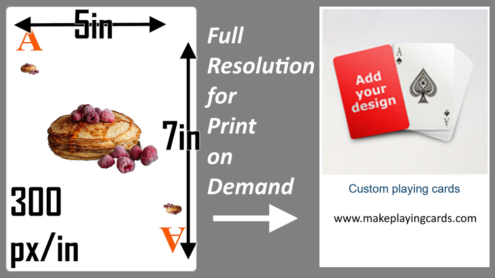 Compatible with POD (print on demand) services. Example: www.makeplayingcards.com
