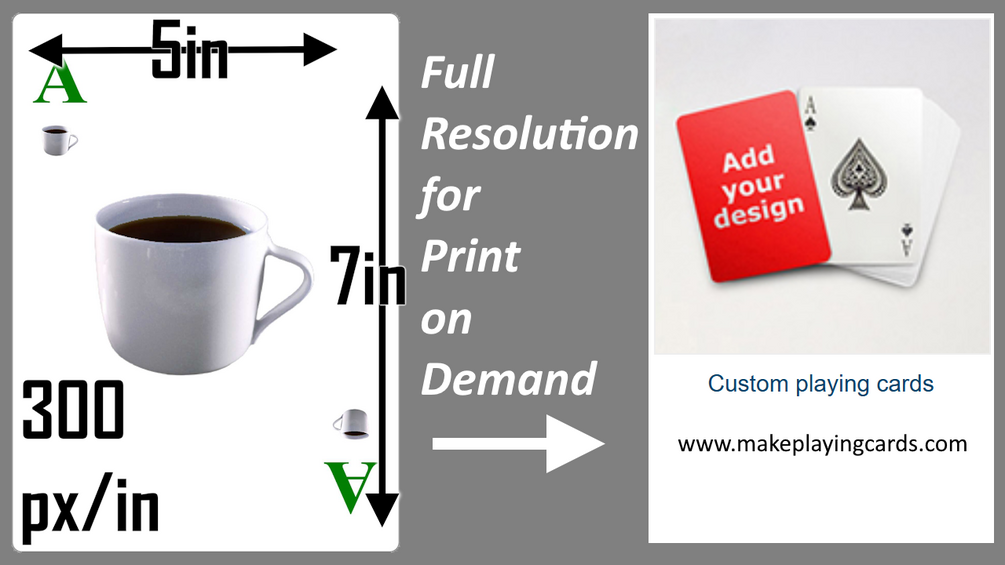 Compatible with POD (print on demand) services. Example: www.makeplayingcards.com